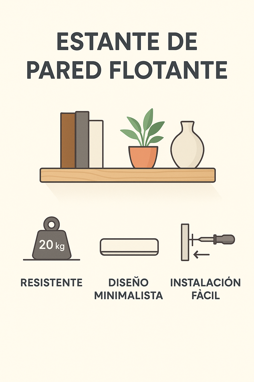 Un estante flotante es una repisa que se fija a la pared sin que se vean los soportes. Esto crea la sensación de que “flota” en el aire, aportando un look limpio y contemporáneo a cualquier habitación.